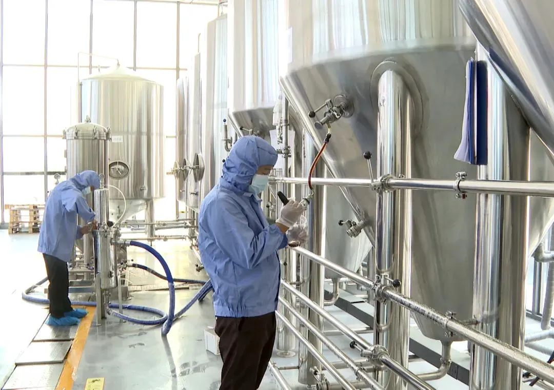 丽笙纪精酿啤酒观光工厂生产酿造车间。(丽江融媒记者 廖浚宏 摄)