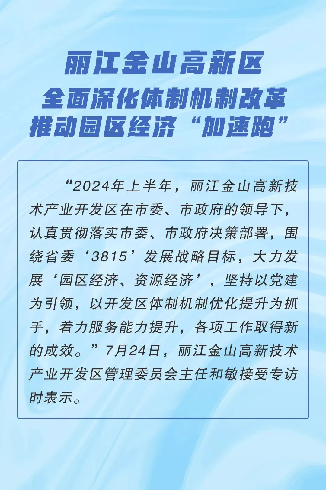 “高新区将认真学习贯彻党的二十届三中全会精神,按照市委、市政府的安排部署,进一步加强党对高新区的全面领导,理顺园区管理机制体制;进一步扫除制约园区经济发展的障碍,守正创新、真抓实干,以改革为牵引推动高新区高质量发展。”和敏表示,今年下半年,丽江金山高新技术产业开发区将全面深化体制机制改革,加快重点项目推进,积极帮扶解决已投产企业的困难,帮助企业做好市场拓展、减税降费、争取各种扶持政策落地,优化投资效率。进一步优化营商环境,做好赋权审批事项的承接,切实缩短项目落地审批周期,提升高新区经济实力。