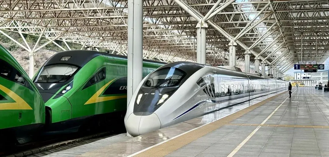 丽江火车站动车穿梭。(丽江融媒记者 廖浚宏 摄)