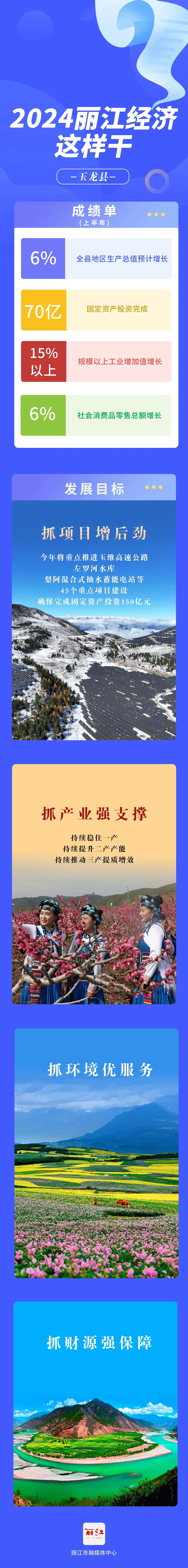 一是抓项目、增后劲。近年来,玉龙县固定资产投资对全市投资作出了积极贡献,2022年完成173亿元,在全市占比30.5%;2023年完成169亿元,在全市占比30.2%;2024年投资目标150亿元,在全市占比32.3%。要完成今年投资目标,将重点推进玉维高速公路、左罗河水库、梨阿混合式抽水蓄能电站等45个重点项目建设,确保完成固定资产投资150亿元,彰显玉龙应有的担当。