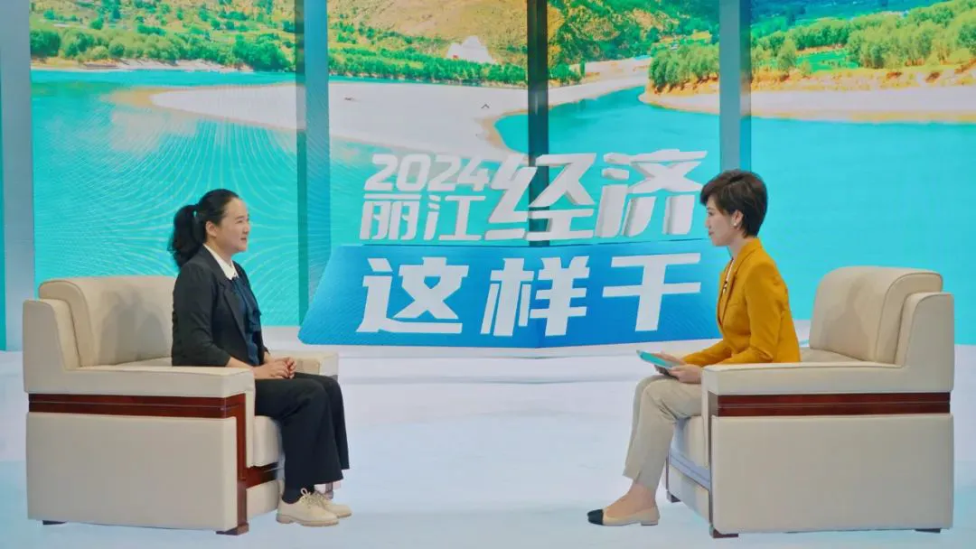 玉龙县委副书记、县长和秋珍在丽江市融媒体中心演播室接受专访。(丽江融媒记者 李琳 摄)