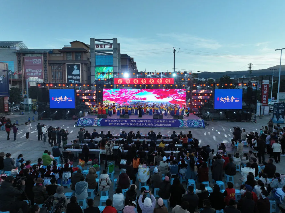 丽江火塘季“有一种叫云南的生活——云南舞蹈大家跳”暨“冬季村晚”民族团结进步大舞台文化惠民演出。(供图)