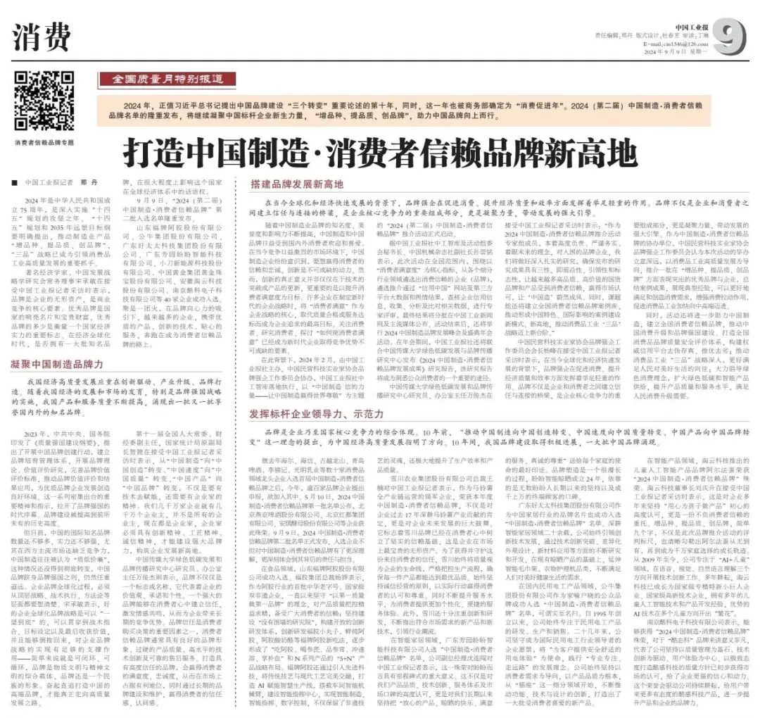 近日,由中国工业报社主办的“2024(第二届)中国制造·消费者信赖品牌”评选活动,发布第二批入选名单!