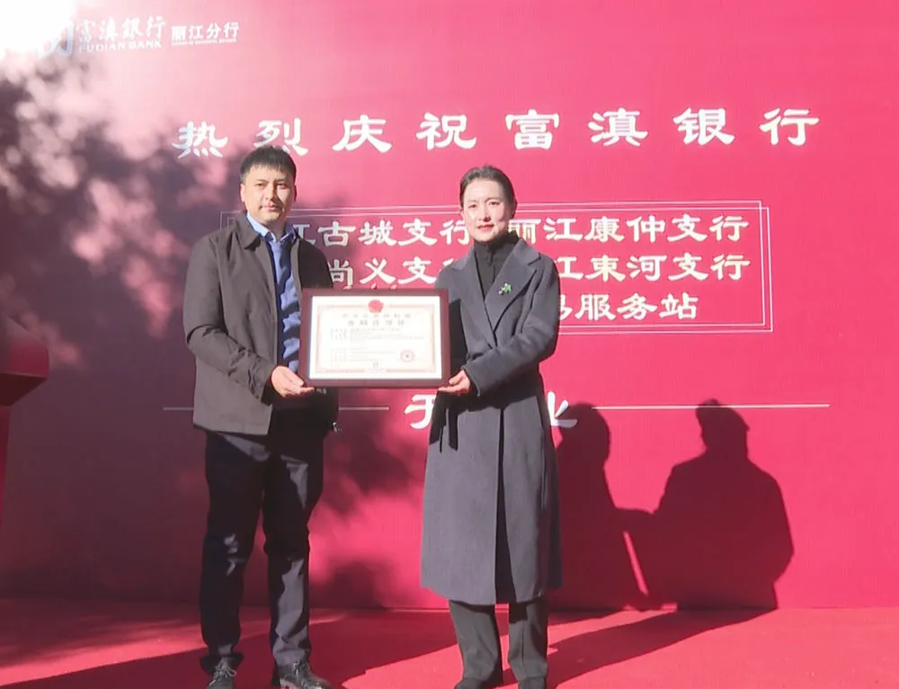 开业仪式上,国家金融监督管理总局丽江监管分局有关负责人宣读开业批复,并为丽江古城支行、丽江康仲支行、丽江尚义支行、丽江束河支行颁发金融许可证和金融机构代码证,为富滇银行古城支行揭牌。