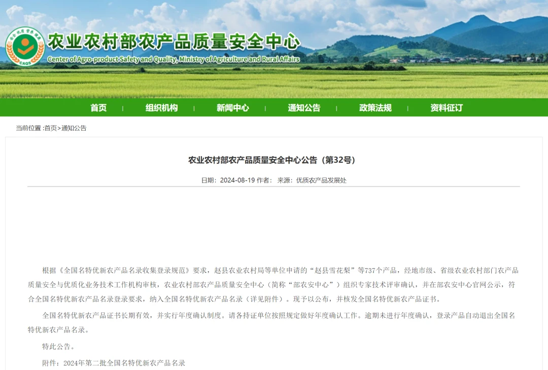 据悉,全国名特优新农产品证书长期有效,并实行年度确认制度。此前,丽江市古城区丽江草莓入选2024年第一批全国名特优新农产品名录。