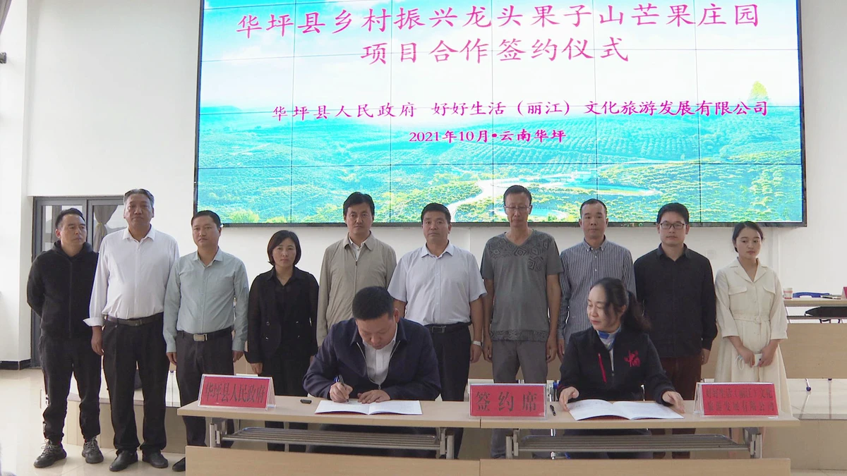 为认真贯彻落实丽江市第五次党代会精神,加快推进全市乡村振兴示范区“2+6”试点之一的龙头果色天香乡村振兴示范点建设,10月21日,华坪县人民政府与好好生活(丽江)文化旅游发展有限公司在龙头果子山田间学校签订华坪县乡村振兴龙头果子山芒果庄园项目合作协议。市人大常委会副主任、县委书记余丽军等市县领导和好好生活(丽江)文化旅游发展有限公司负责人出席并见证签约。
