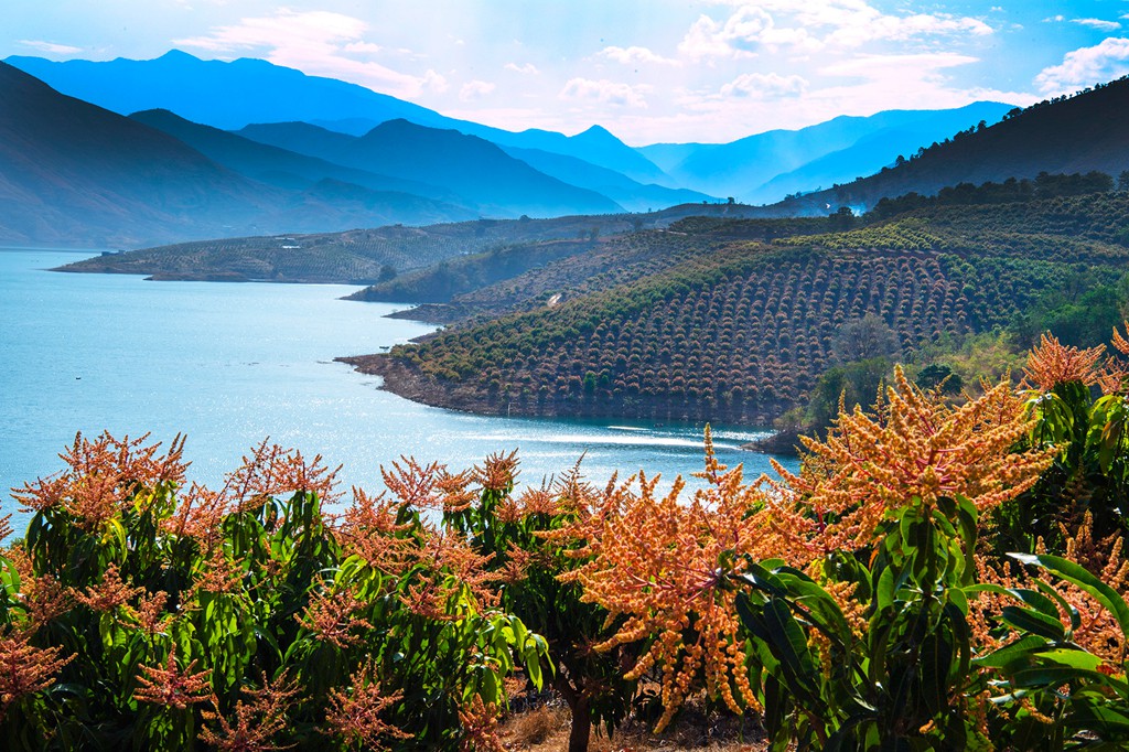 华坪县依托海拔、气候、光照等资源优势,经过不断探索发展,不断壮大以芒果为主,核桃、花椒、茶叶、柑橘、烤烟、蚕桑、蓝莓等为辅的生态产业130多万亩,筑牢了长江中上游的生态屏障。阳春三月,金沙江畔成了芒果花海。