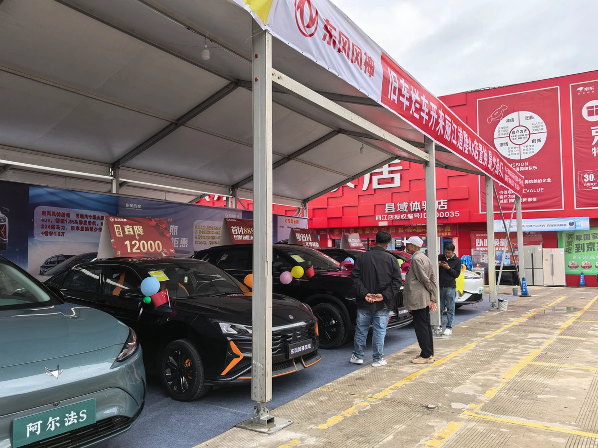 9月30日,在以旧换新汽车展销现场,工作人员正在给市民介绍优惠政策。(丽江融媒记者 秦文静)