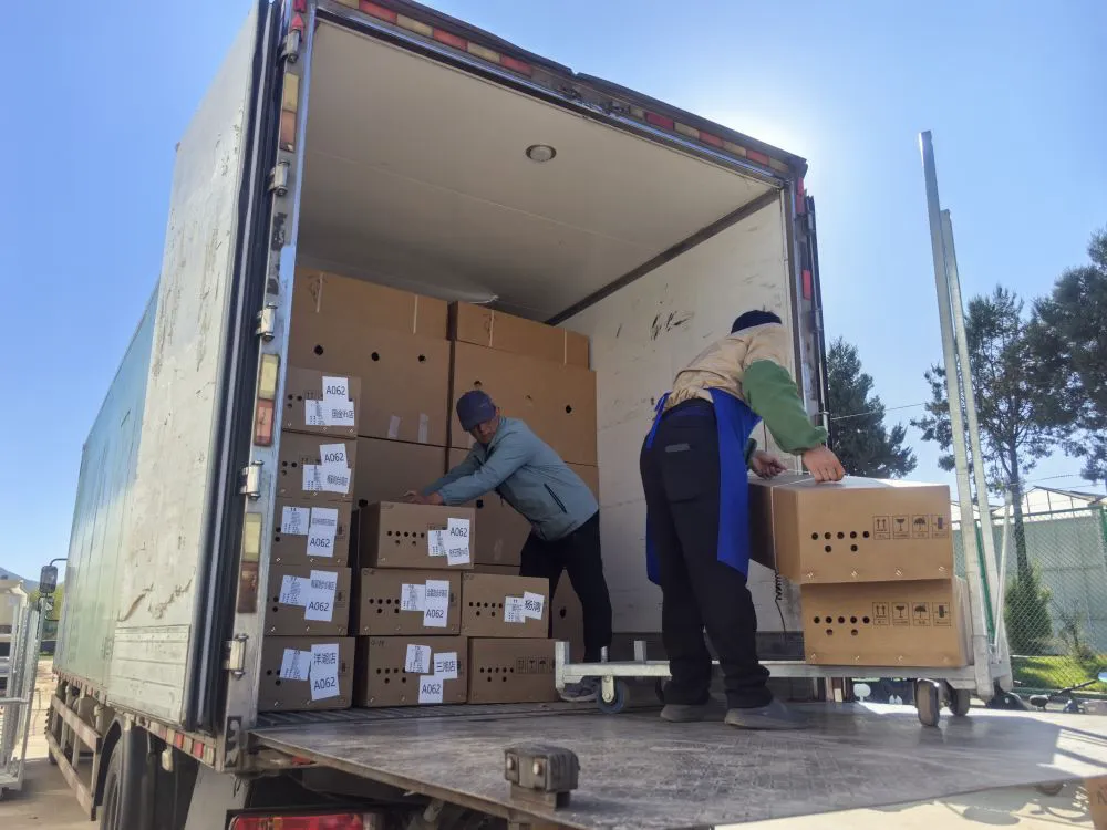 丽江现代花卉产业园工作人员将成品鲜切花装车,准备运输。(丽江融媒记者 侯玮 摄)