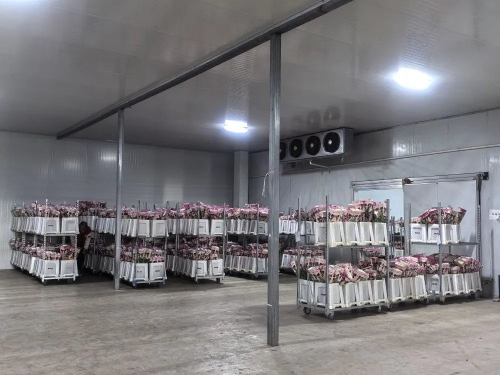 丽江现代花卉产业园冷库中储藏的成品鲜切花。(丽江融媒记者 侯玮 摄)
