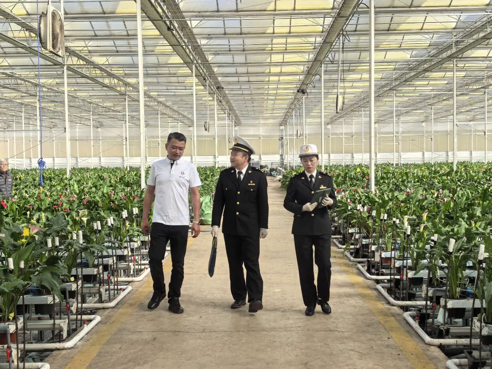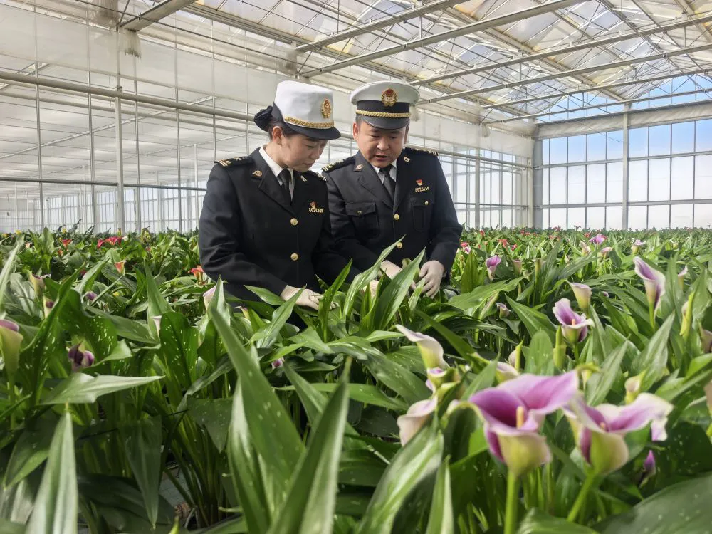 初冬的丽江现代花卉产业园,智能温室大棚内暖意融融,各色玫瑰、马蹄莲等鲜花竞相绽放,一派生机盎然的景象。花田间,丽江海关关员正对申报出口的鲜切花进行细致查验,从叶片有无病虫害、花头饱满度,到包装是否符合国际运输标准,每一个环节都严格把关,确保出口花卉品质达标。