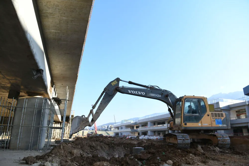 建设者奋战在施工一线,全力推进项目施工进度。(丽江融媒记者 赵庆祖 摄)