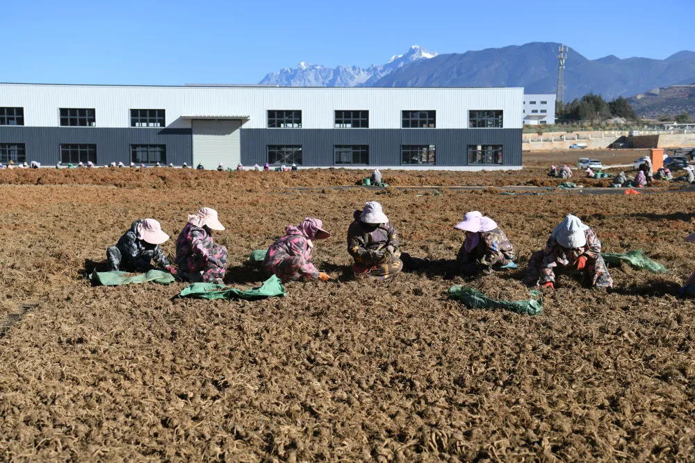 工人们正进行分拣、翻晒药材。(丽江融媒记者 赵庆祖 摄)