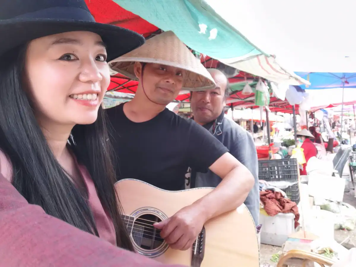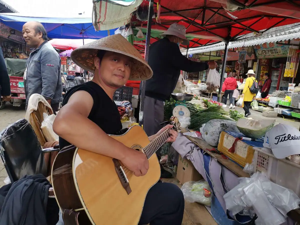 特邀嘉宾时来自成都的车车,车车是一个热爱摇滚的文艺旅行者,上回来丽江是十一年前,这一次当瓜子请他带着吉他走进忠义市场的那一刻,他仿佛一下子就融入到了这个五彩缤纷的世界。