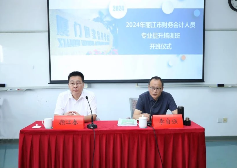 厦门国家会计学院教务一处副处长颜春江,市财政局党组成员、副局长李自强参加开班仪式。(供图)