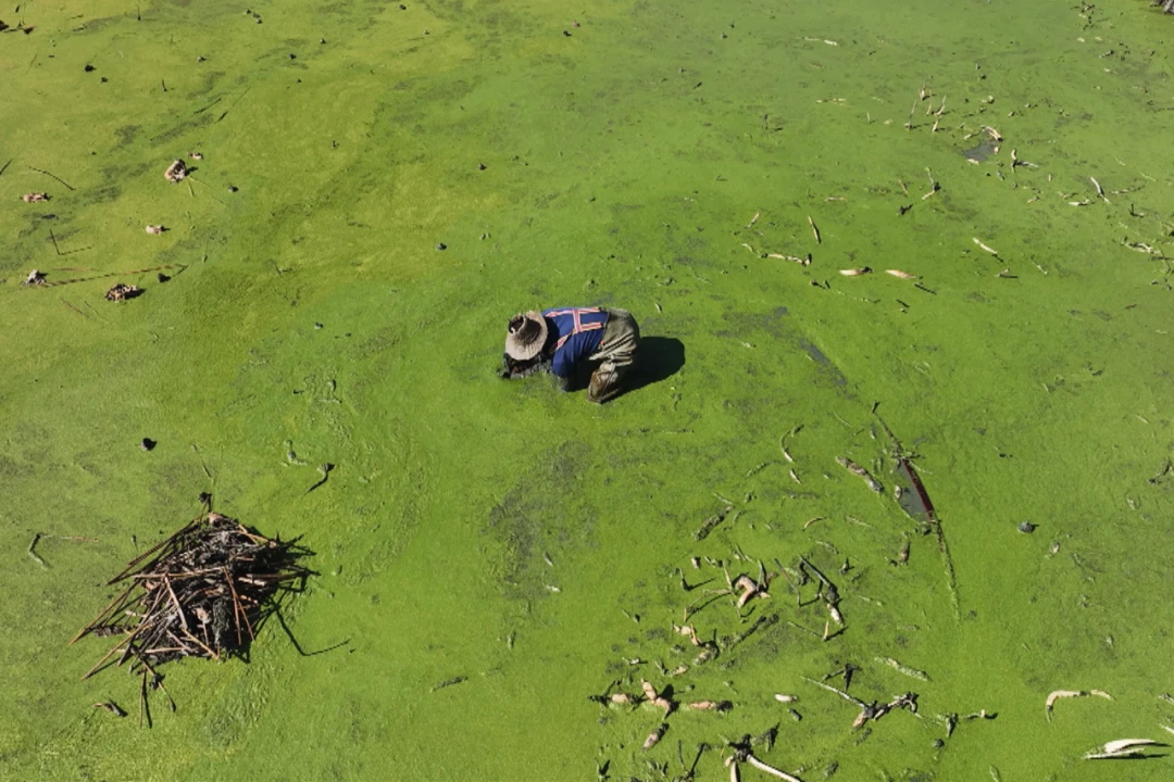 翠湖村村民采收莲蓬。(丽江融媒记者 赵庆祖 摄)