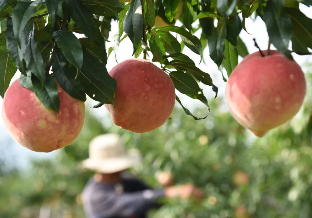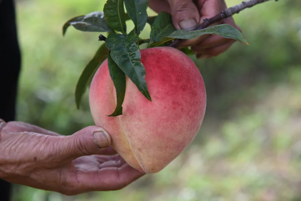 在种植户和春元的桃园里,饱满圆润的雪桃挂满枝头,散发着诱人的果香。“今年家里种了 3 亩雪桃,气候适宜加上科学管理,甜度、品质都比往年显著提升。” 和春元笑着说,这几天前来采摘的游人络绎不绝。
