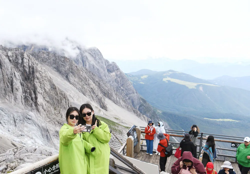 游人在玉龙雪山拍照游玩。(丽江融媒记者 赵庆祖 摄)
