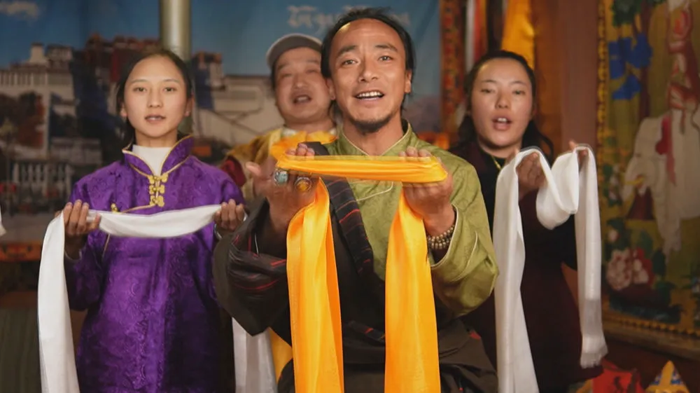 尼玛次仁在直播间展示民族歌舞。(供图)