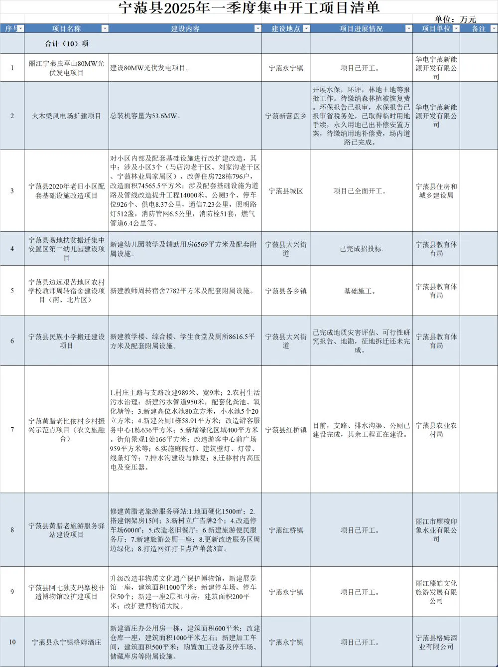 据悉,2025年计划完成投资58.3亿元。2025年第一季度集中开工共10项,总投资11.09亿元,项目涵盖新能源、农业产业、民生改善等多个领域。其中,产业项目6项,总投资7.47亿元;市政基础设施1项,总投资2.16亿元;社会事业项目3项,总投资1.46亿元。