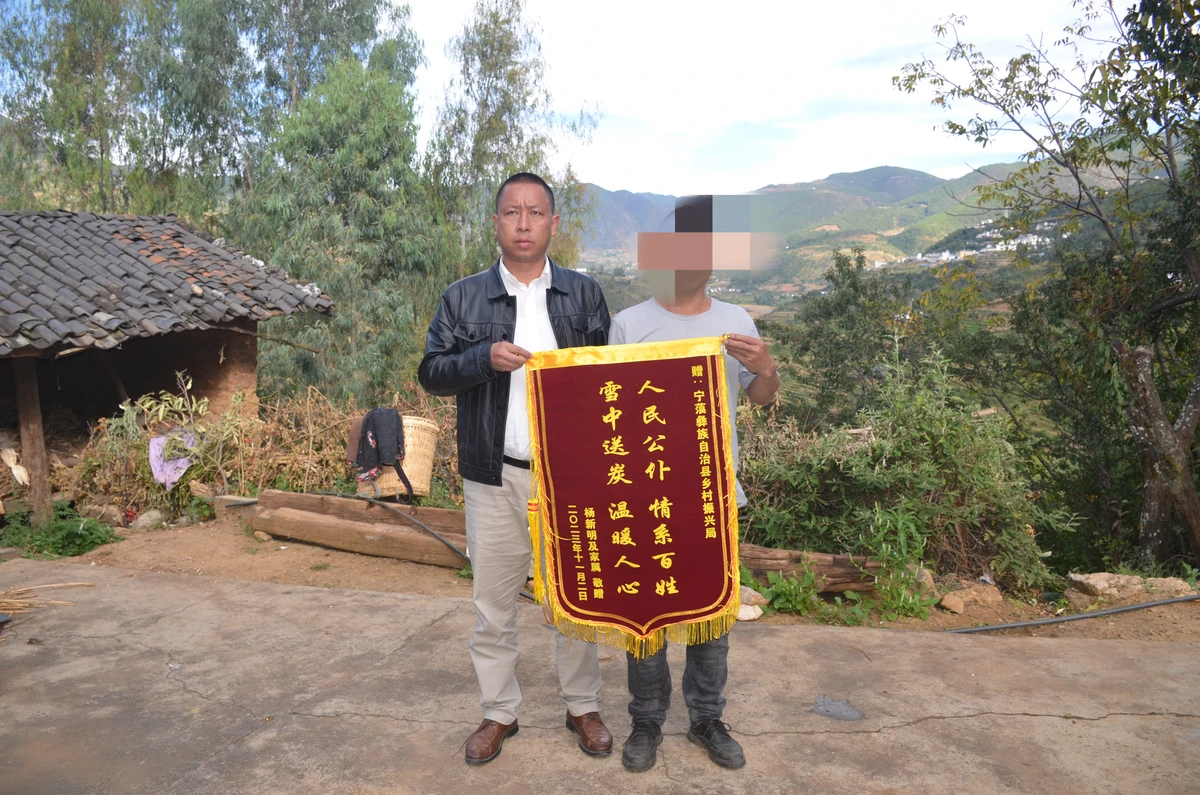 “我一定好好规划,把这笔赔付款用好,给老人和孩子一个安稳的家。”杨明向县乡村振兴局赠送了锦旗。宁蒗县乡村振兴局副局长毛丽坤从杨明手中接过锦旗,叮嘱他要把这笔赔付款用于产业发展、改善人居环境,把老人、小孩照料好。