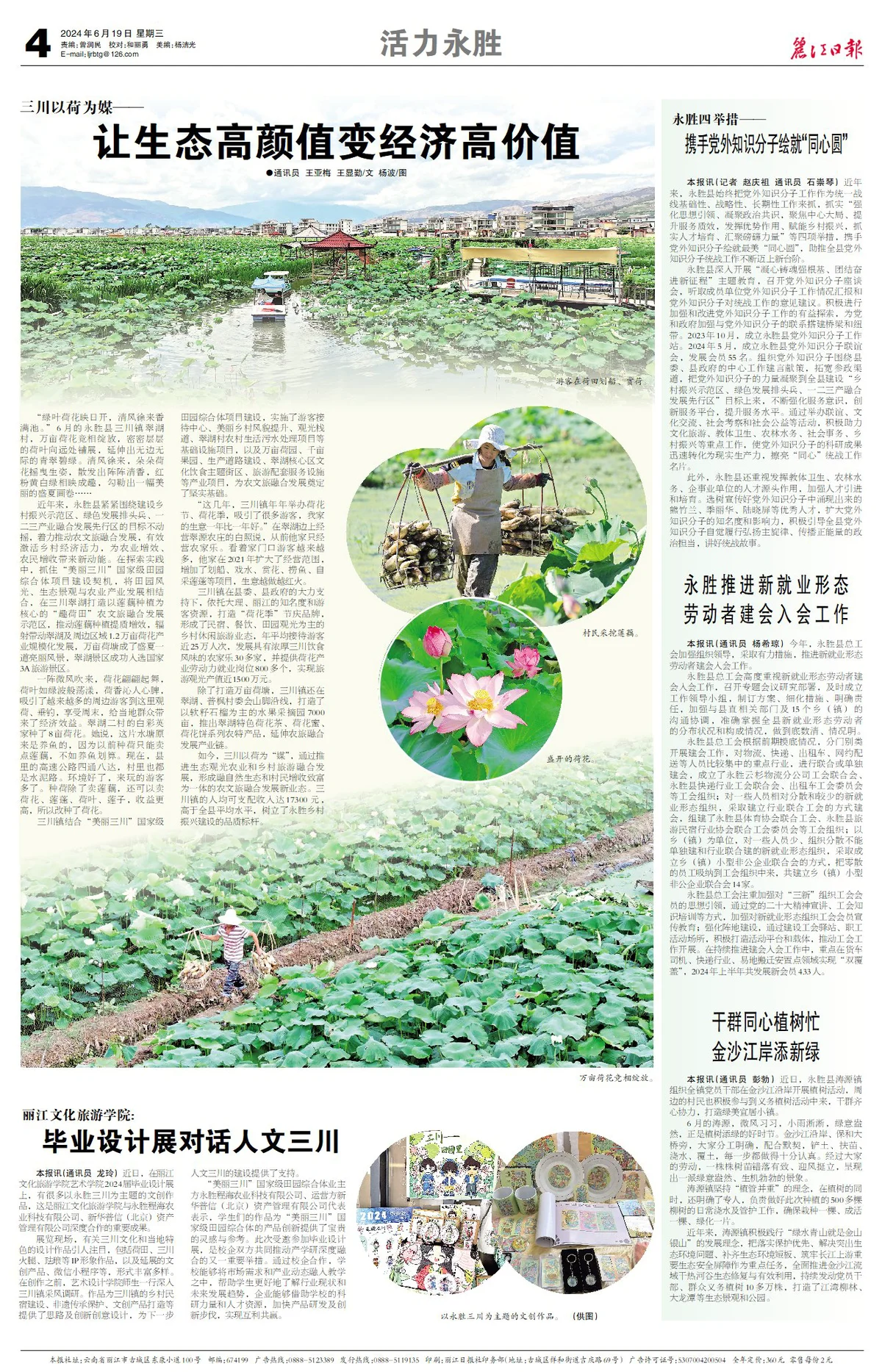 如今,三川以荷为“媒”,通过推进生态观光农业和乡村旅游融合发展,形成融自然生态和村民增收致富为一体的农文旅融合发展新业态。三川镇的人均可支配收入达17300 元,高于全县平均水平,树立了永胜乡村振兴建设的品质标杆。