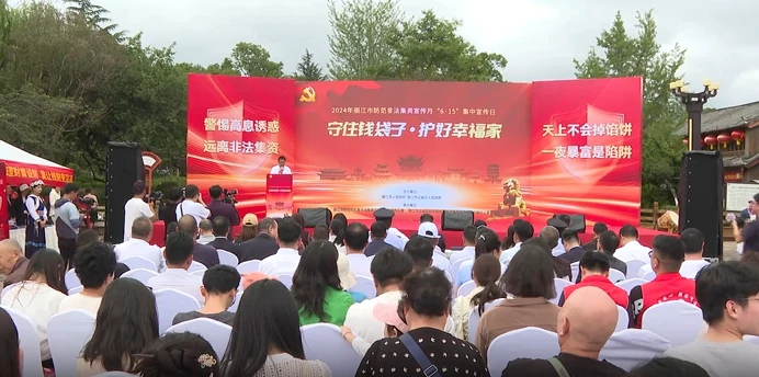 6月15日,2024年丽江市防范非法集资宣传月集中宣传活动在古城玉河广场开展。市委常委、常务副市长徐贤出席活动。