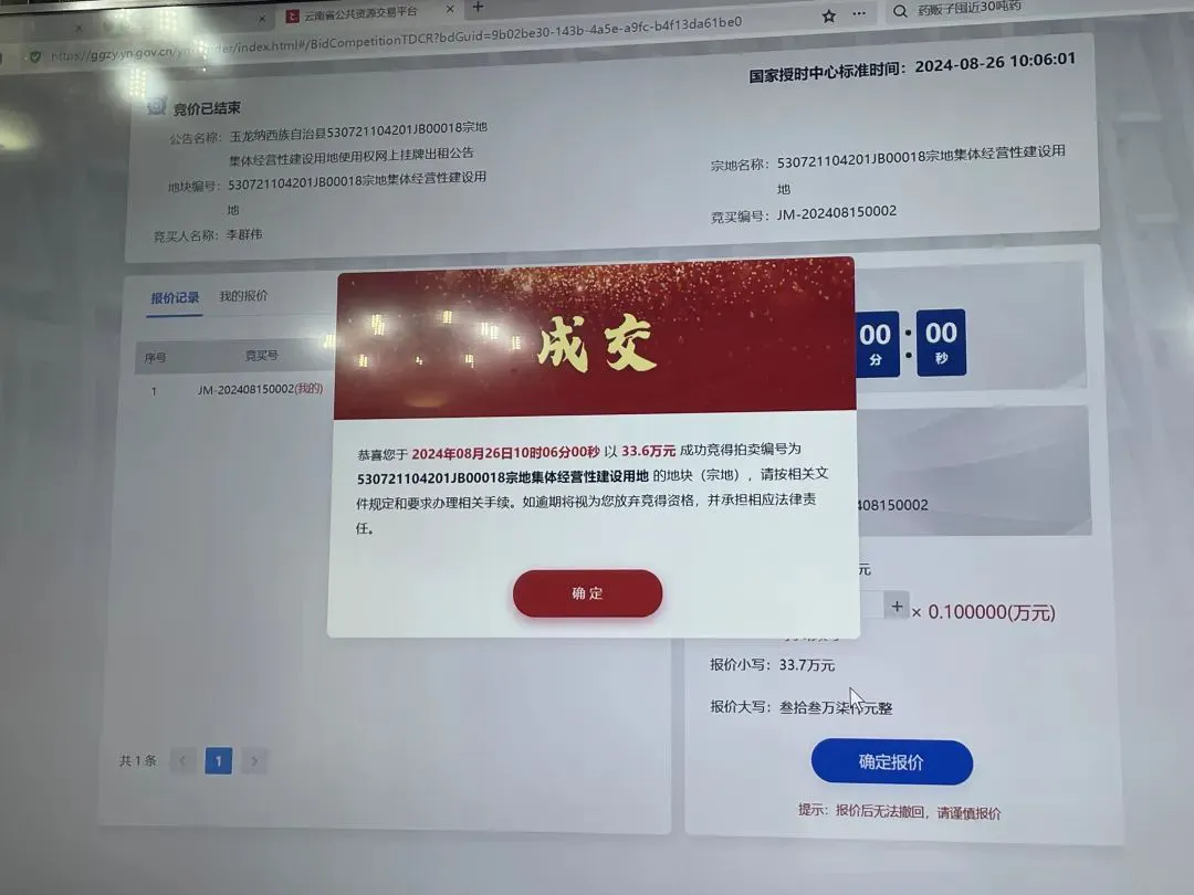 8月26日,玉龙县首宗农村集体经营性建设用地入市交易以33.60万元完成交易,打响了丽江市土地制度改革的第一枪。