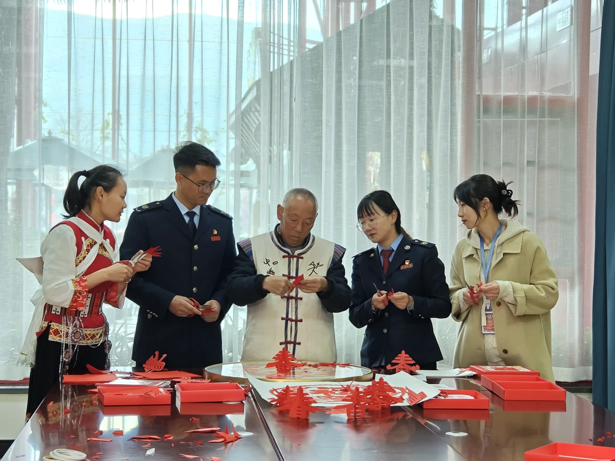 国家税务总局玉龙纳西族自治县税务局组织“企服”团队,走进文旅企业,一同体验剪纸艺术,向纳税人缴费人送上新春祝福。(杨肖/摄)