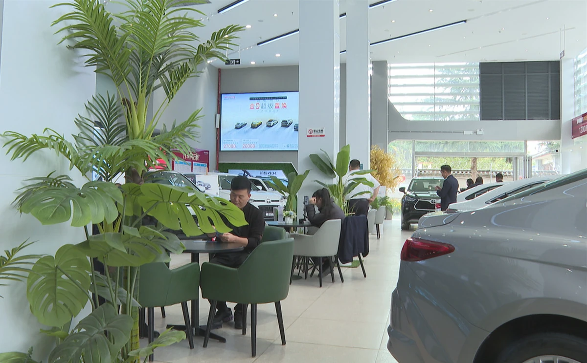9月23日,市民在捷通达集团丽江广汽丰田店选购车辆。(电视截图 秦文静 摄)