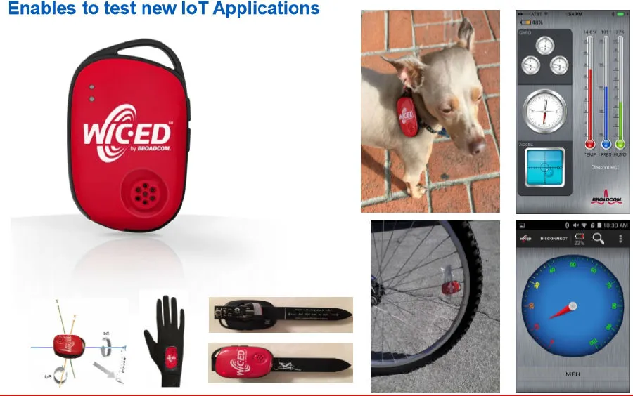 有很多用WICED来测试创意的例子(如图2)。例如用WICED来测试手势识别的例子;给自行车实现一个APP仪表盘;给宠物设计的可穿戴设备……。物联网带来很多这样有趣的应用,新想法层出不穷,WICED Sense帮助开发者快速测试他们的想法,缩短了从创意到产品的时间,跑在竞争对手前面。