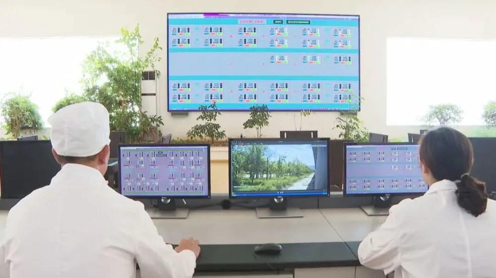在中央控制室内,33.2万平方米的养殖基地尽收眼底。(丽江融媒记者 赵丽军 摄)