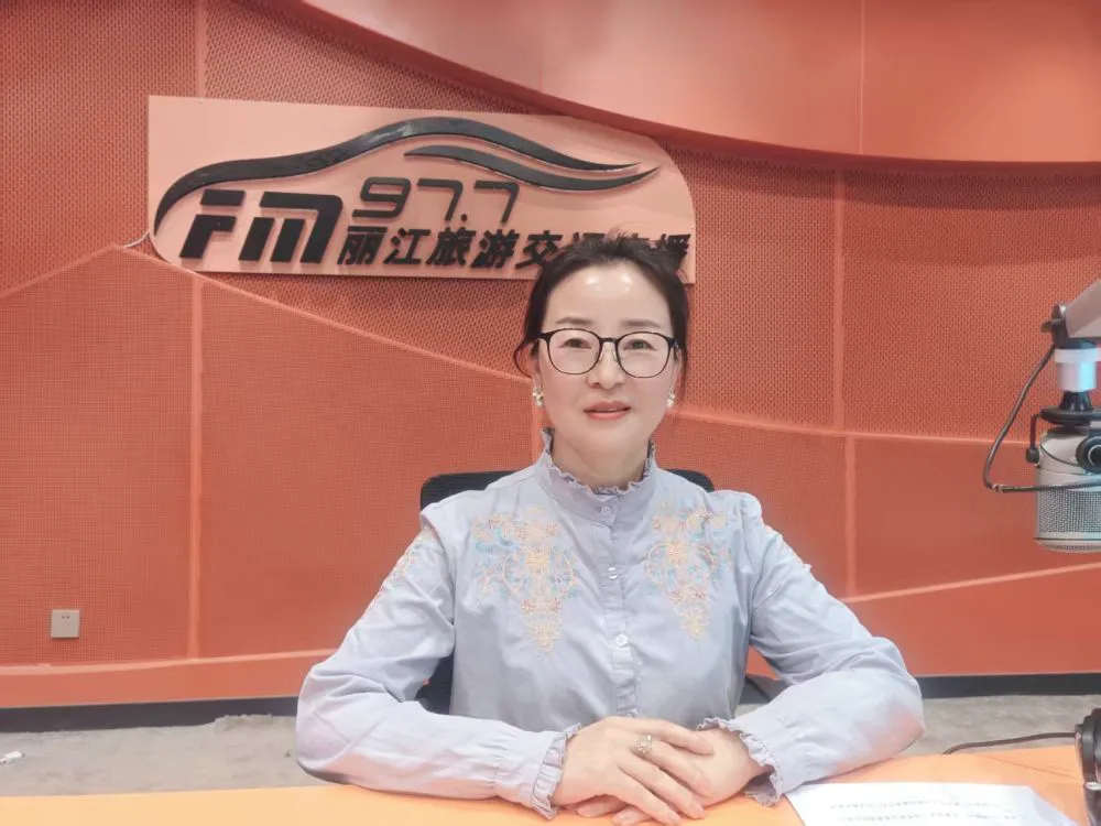 4月22日,丽江金融监管分局金融消保科二级主任科员关琼走进FM97.7旅游交通广播直播间。(丽江融媒记者 和琼 摄)