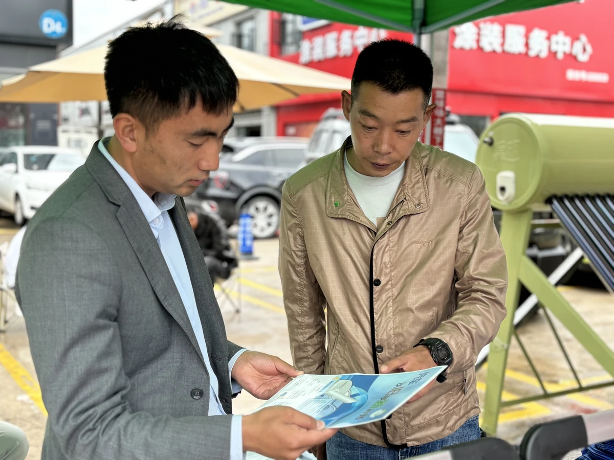 工作人员介绍汽车以旧换新补贴政策。(和宝其 摄)