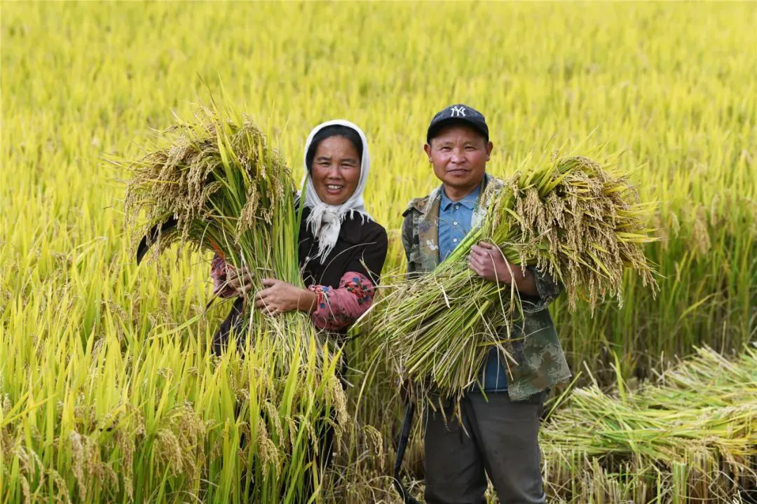金秋时节,稻香四溢。时下,在永胜县顺州镇万亩晚熟水稻种植基地,一串串沉甸甸、金灿灿的稻穗铺满田野、随风飘曳。农民在田间忙着收割水稻,与青翠的山峦、整洁的村庄相互映衬,共同构成了一幅美丽的秋日田园丰收画卷。