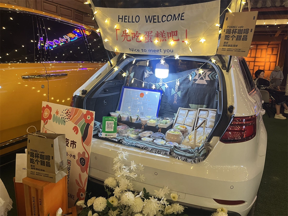 狮子山夜市与嘉和夜市相比,除了有烟火气,还多了一丝氛围感,售卖的各种小吃也比较精致,有些摊主的摊位也设计得比较新颖,后备厢市集、帐篷式摊位的升级版“新玩法”,深得许多年轻人的喜爱,这让夜市的“档次”更高了,还吸引了一波流量。