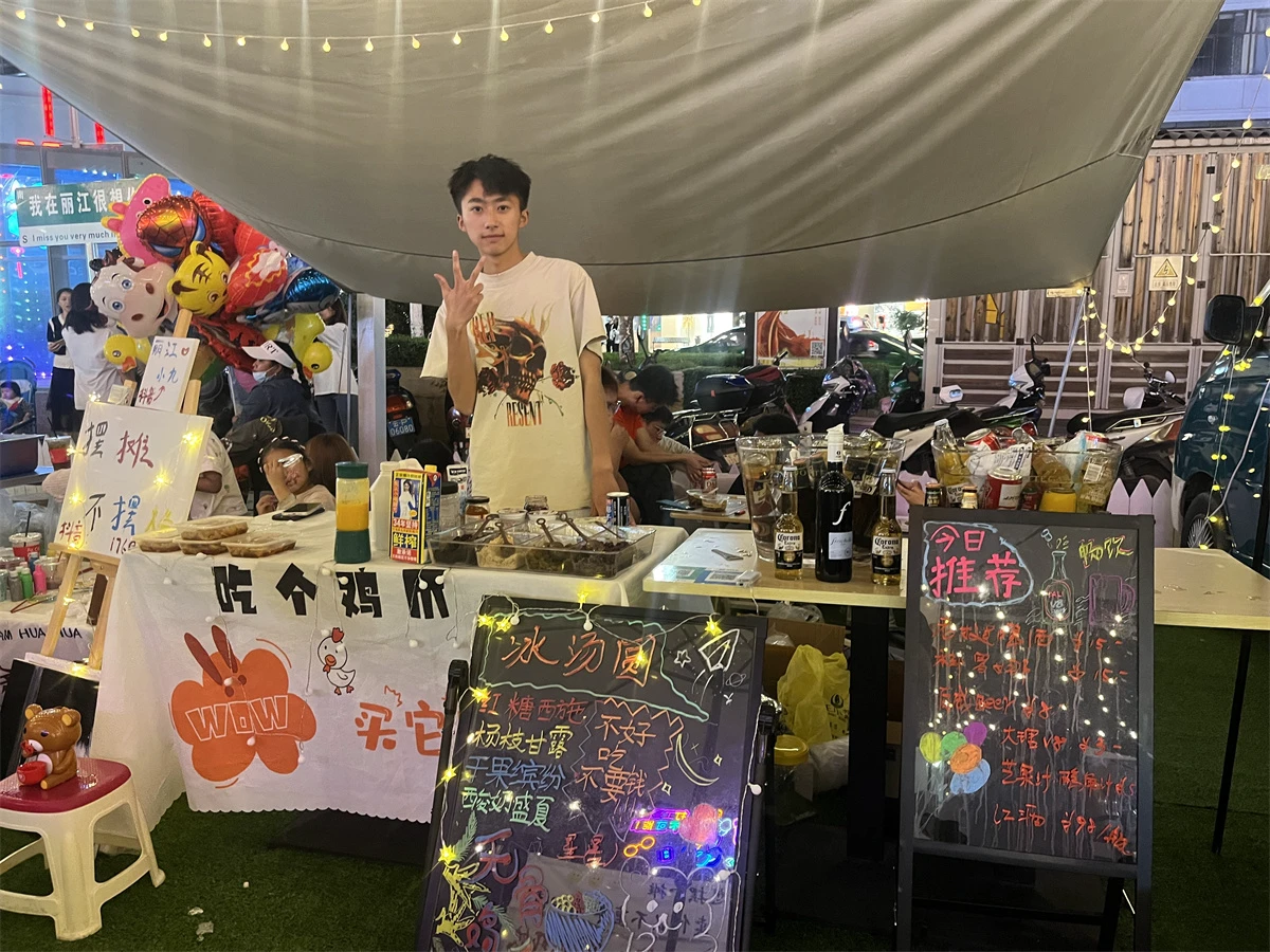 据了解,赵晶承和伙伴每天从5点左右就开始出摊,到晚上凌晨才收摊,一天大概有三、四百的收入。赵晶承说,出来摆摊是为了体验生活,虽然辛苦,但是能从中收获很多。“摆摊其实是我想开店创业的一个缩影,我喜欢自由不被束缚的感觉,于是毕业便叫上了志同道合的一两好友开始了摆摊。摆摊的这几天生活过得很充实,认识了很多有趣的人,也在卖冰汤圆的同时发现了自己的闪光点,让我明白少年没有完不成的理想,心中有想要达到的目标或者想去的地方,就要付诸于行动。”