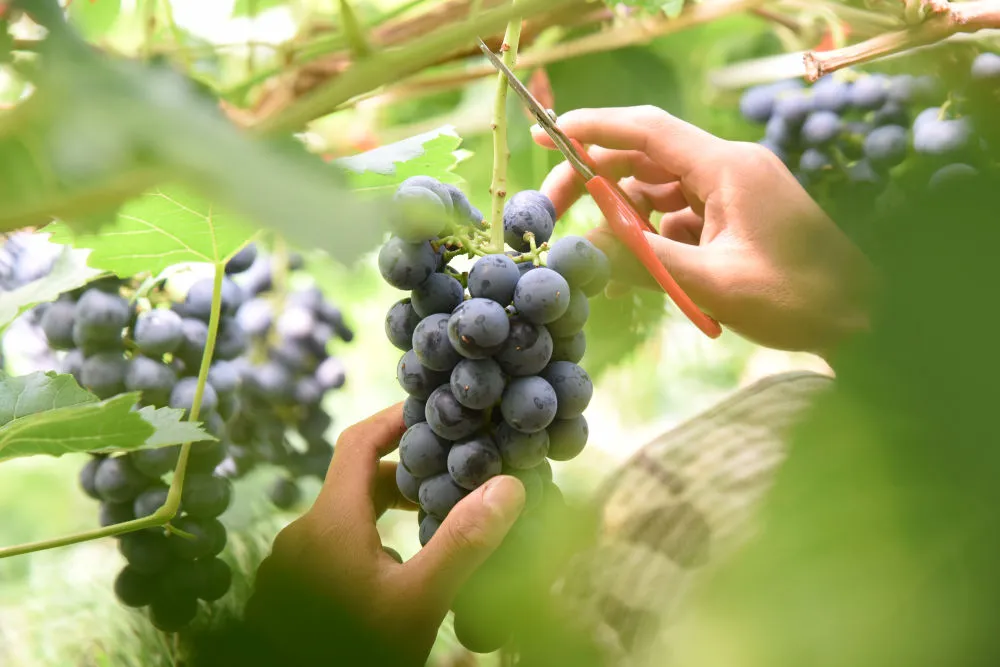 果农采摘葡萄。(丽江融媒记者 赵庆祖 摄)
