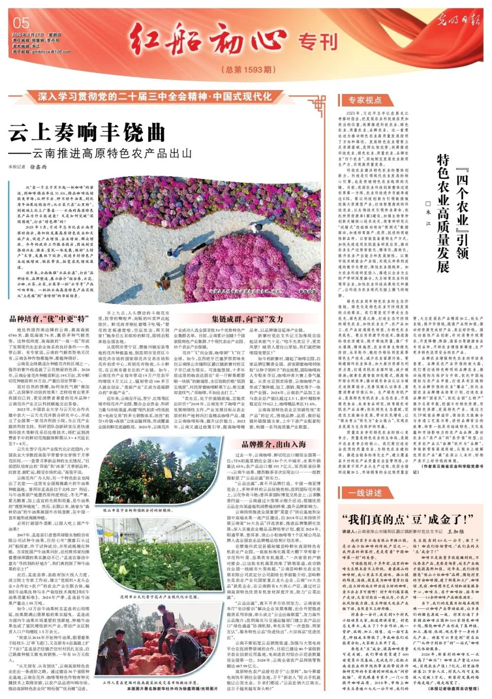 云南高原特色农业正突破传统“卖产品”的定式,围绕品牌、品质,做好延链补链强链文章,上中下游产业配套衔接,构建一系列高质量产业联盟。
