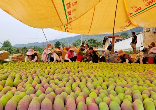 上市期至,在华坪县各大芒果基地里,饱满的果实挂满枝头,果农们马不停蹄地忙碌着,采摘、打包、运输,每天有数万斤芒果被送往全国各地。