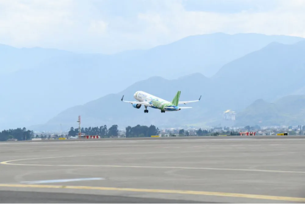 飞机从丽江三义国际机场起飞。(丽江融媒记者 赵庆祖 摄)