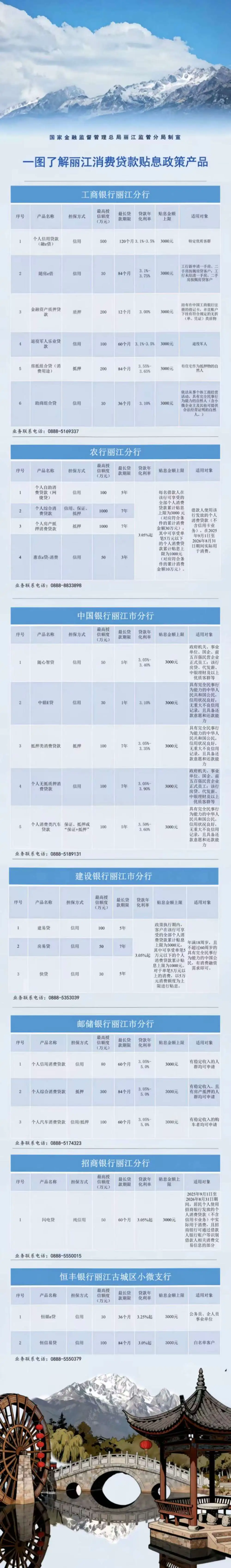 1.工商银行丽江分行:0888-5169337