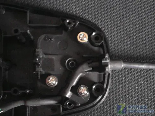 取下鼠标脚帖,就可以看到底部的三个螺丝孔,近距离一看,汗,不是鼠标上常用的十字螺丝,而是三颗六星螺丝,不幸中的万幸,这要是用的力胜的那种三角螺丝,笔者可能就得先出去买工具了哈。(拆开鼠标等于放弃质保,各位玩家如若模仿,后果自负)
