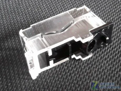 “蓝影”光学引擎专用透镜,很高,蛮有些“花盆底”的味道。黑色部分起固定高亮LED光源及防漫射作用。