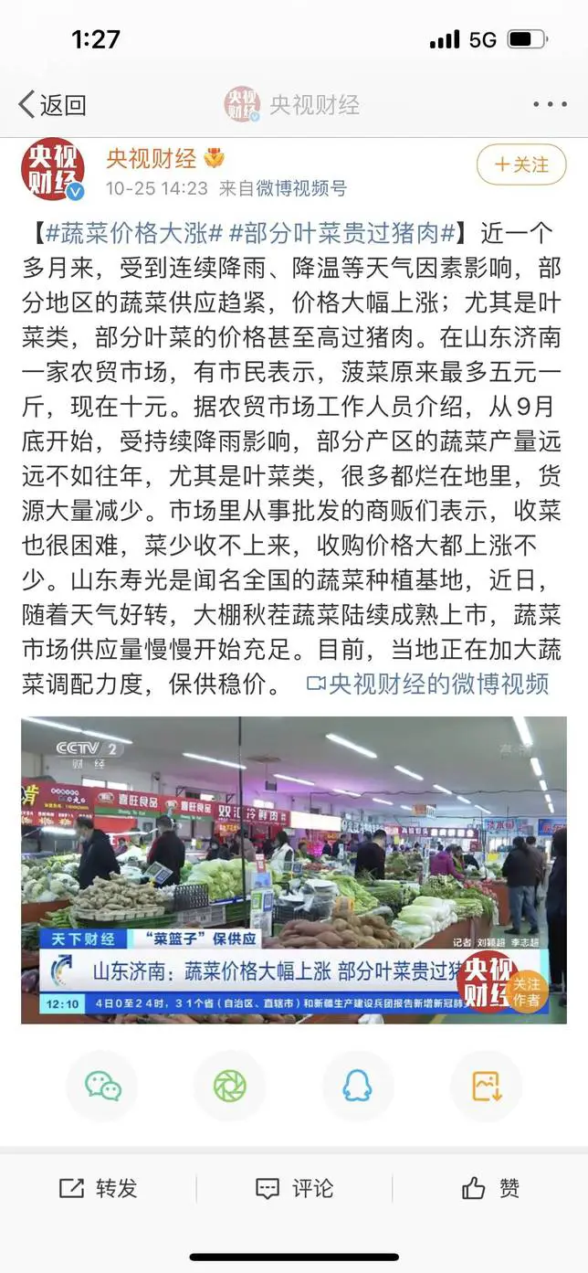 @纳西若铎:这次蔬菜价格上涨背后有很多原因,大家理性看待。