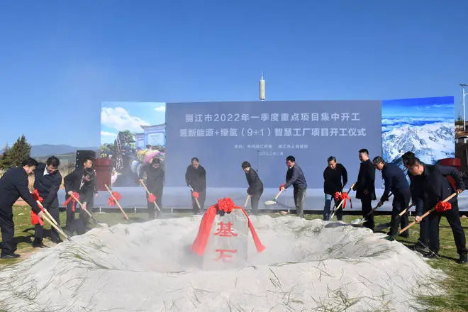 2月25日,丽江市2022年一季度重点项目暨新能源+绿氢(9+1)智慧工厂项目开工仪式在金山工业园区举行,除古城区外,各县在一季度重点项目开工仪式现场设分会场。
